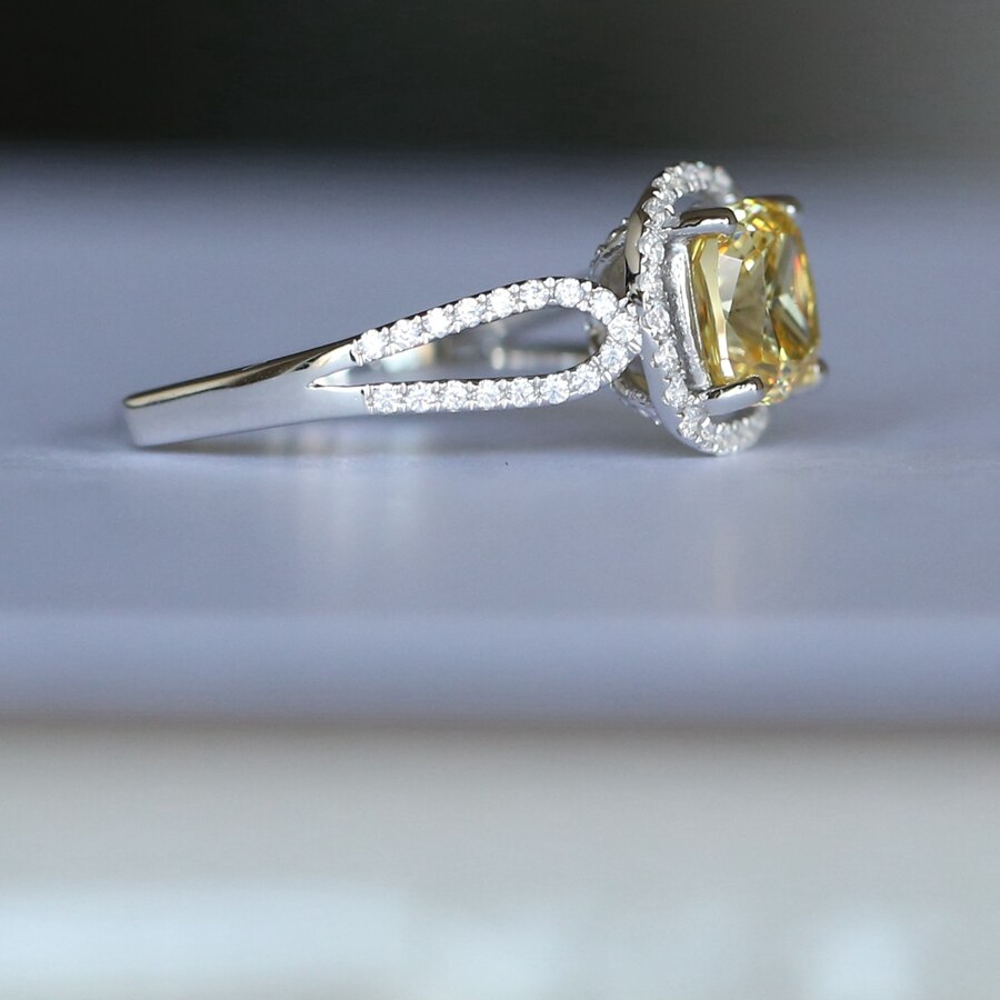 Fashion 925 Sterling Silver Yellow Gemstone Ring