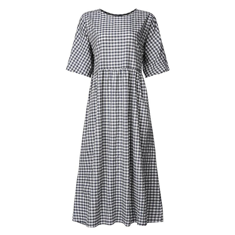 Summer Plaid Cotton Maxi Dress for Women