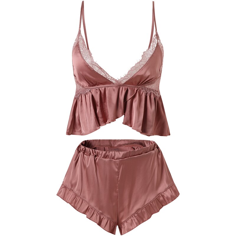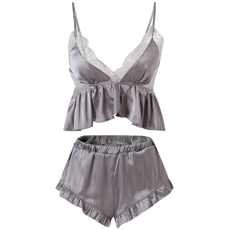 Women's Silk Ruffles Decorated Top and Shorts Pajama SetWomen's Silk Ruffles Decorated Top and Shorts Pajama SetWomen's Silk Ruffles Decorated Top and Shorts Pajama SetWomen's Silk Ruffles Decorated Top and Shorts Pajama Set